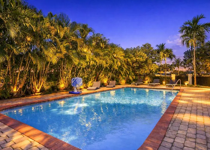 Diese Villa in Miami liegt in einer Entfernung von etwa 10 Autominuten vom Aventura Mall, und man kann auch den Veterans Park besuchen (15 Minuten Fahrt von der Unterkunft entfernt). Zu den kulturellen Sehenswürdigkeiten in der Nähe gehört das Art and Culture Center of Hollywood, der 6 Kilometer von ist. Die Villa Aventura Lakefront ist 20 Minuten Fahrt von Heritage Park entfernt.